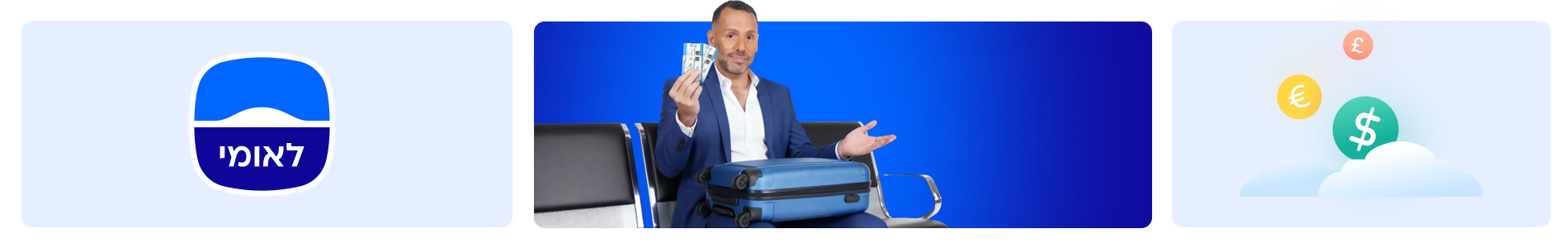 חדש בלאומי! הרחבנו את מגוון המטבעות הזרים למשיכה בכספומטים - מהיום תוכלו למשוך לירה שטרלינג, דירהם אמירתי, באט תאילנדי וקורונה צ'כית בקלות ובנוחות, בסניפים נבחרים ברחבי הארץ.